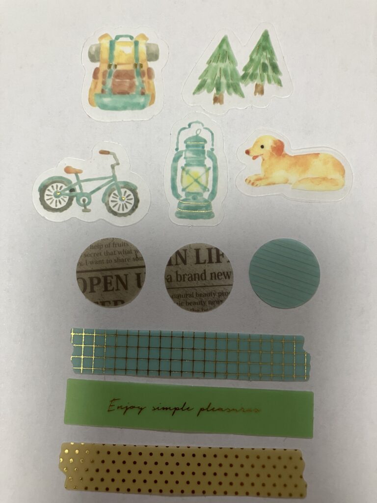 アウトドア関連のシールと、背景に使えるシールが入っています。