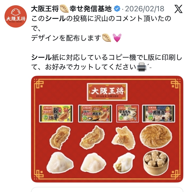 最近SNSでロッテの商品や大阪王将のシールを作成している投稿をみかけます。