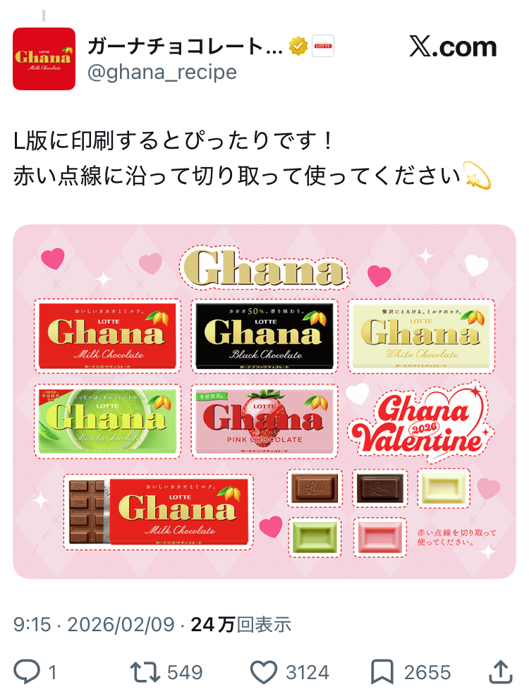 <ロッテ ガーナチョコ> 公式Xより引用