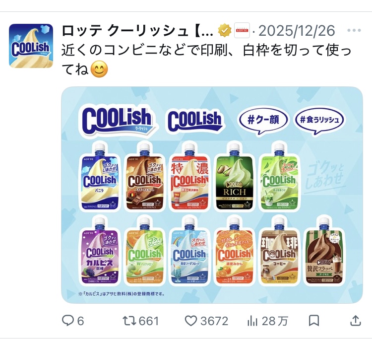 <ロッテ COOLish> 公式Xより引用